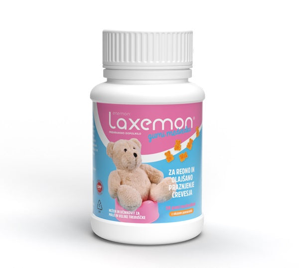 Dodatak prehrani Laxemon gumeni bomboni sadrži laktulozu koja pridonosi bržem prolasku crijevnog sadržaja. Navedeni učinak postiže se dozom od 10 grama (7 gumenih medvjedića) laktuloze odjednom.