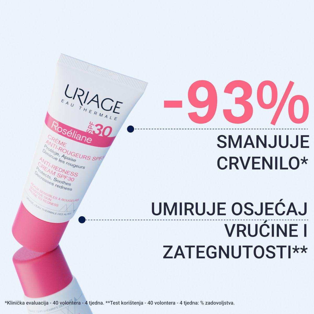 ROSELIANE njega protiv crvenila SPF30 smanjuje i pomaže spriječiti crvenilo dok štiti kožu od UVB/UVA zraka. Sastavljena od priznatih dermatoloških aktivnih sastojaka, crvene alge i ceramida, odmah i trajno umiruje osjećaj pečenja i zatezanja. Trenutna učinkovitost.