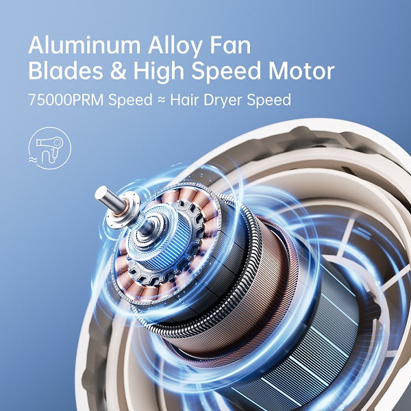 JisuLife Ultra1 ručni ventilator savršen je spoj snage, praktičnosti i profinjenog dizajna. Opremljen naprednim motorom bez četkica i aerodinamičnim turbinskim lopaticama, pruža iznimno snažan protok zraka do 9,8 m/s, što ga čini idealnim rješenjem za brzo i učinkovito hlađenje u svim uvjetima. Izuzetno snažan protok zraka s 100 razina podešavanja (može se koristiti kao sušilo za kosu).