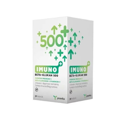 Imuno BC 500 kapsule sadrže visokopročišćeni beta-(1,3/1,6)-D-glukan izoliran iz stanične stijenke kvasca Saccharomyces cerevisiae i 100% preporučenog unosa vitamina C koji doprinosi normalnoj funkciji imunološkog sustava i smanjenju umora i iscrpljenosti.
